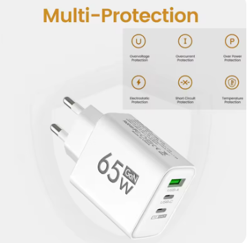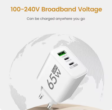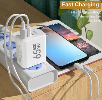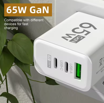 The 65W GaN Fast Charger delivers rapid USB-C PD 3.0 charging in a compact, travel-friendly design.