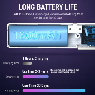 – Acts as a UV mosquito lamp, an electric bug zapper, and a swatter with an extendable handle for hard-to-reach areas.