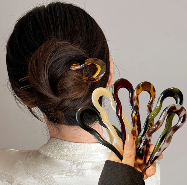 Add a modern twist to your hairstyle with this matte U-shaped hair stick set!