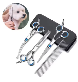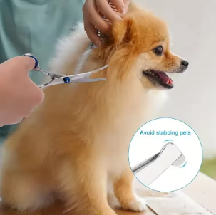 Trim your pet’s fur safely and efficiently with these ambidextrous grooming scissors. Designed for precision, comfort, and safety, they are perfect for dogs and small animals.