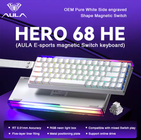 The AULA HERO 68HE Gaming Keyboard features magnetic switches and an ultra-fast 8K polling rate for elite-level responsiveness.