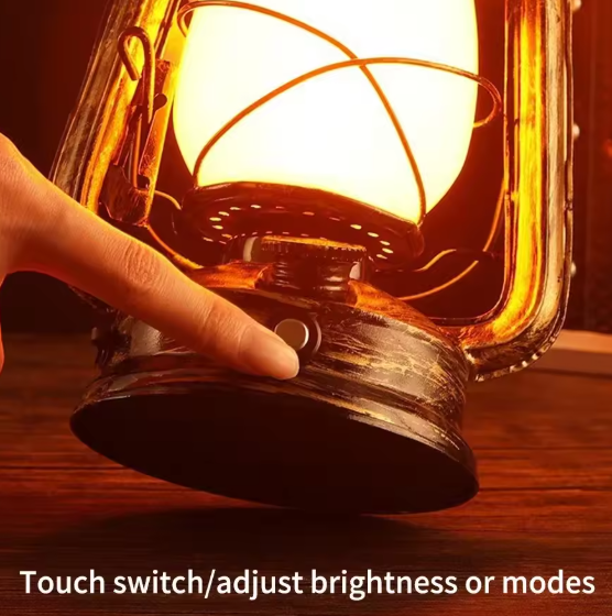 🔥 Flame Effect USB-C Rechargeable Lantern – Vintage Industrial Table & Camping Light