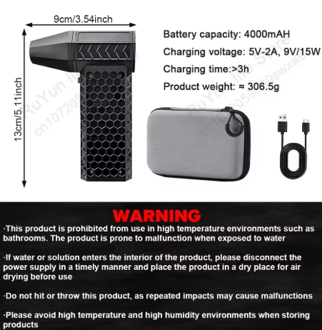 CAER Turbo Jet Mini Fan – 130,000 RPM, 52m/s Wind Speed, Portable Dust Remover, Storage Bag Included