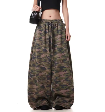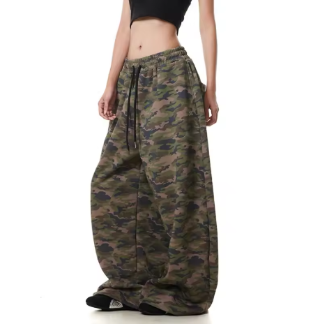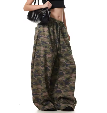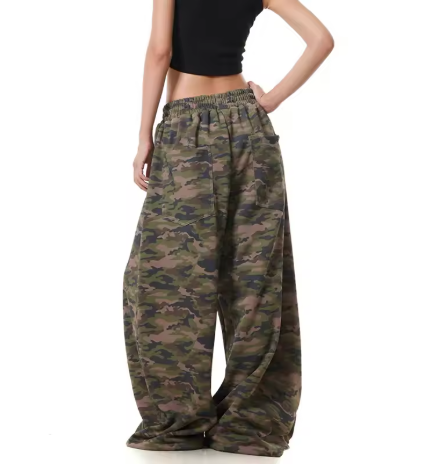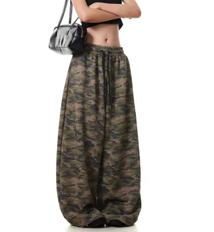 The Camo Cargo Baggy Pants feature a high-rise fit and straight wide-leg cut, bringing back the vintage Y2K vibe.