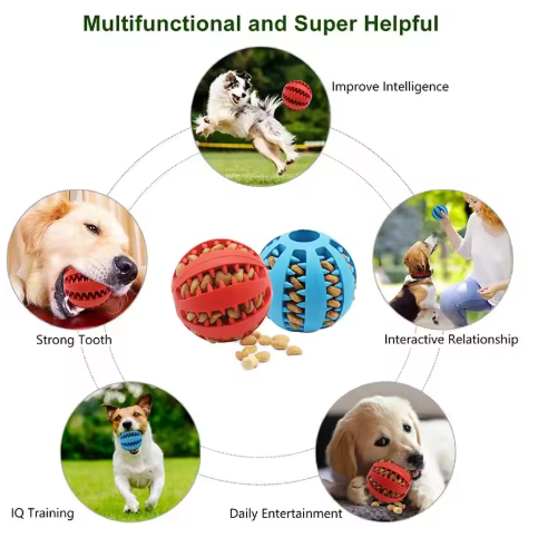 The Dog Toy Ball is designed for safe and fun play, helping clean teeth while holding treats for extra excitement.