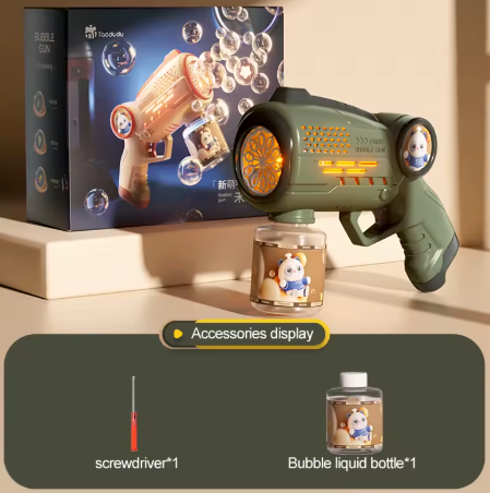 The Electric Bubble Gun is perfect for outdoor fun, parties, and playful gifts — featuring automatic bubble spray and colorful LED lights!