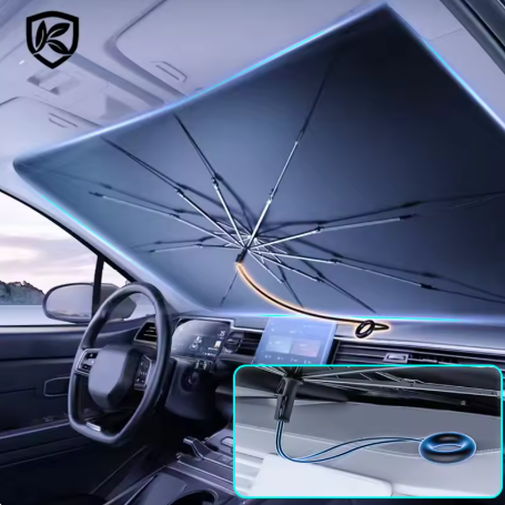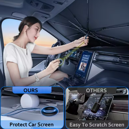 The Folding Car Windshield Sunshade blocks harmful UV rays and heat — perfect for daily parking in the hot sun!