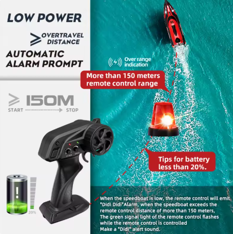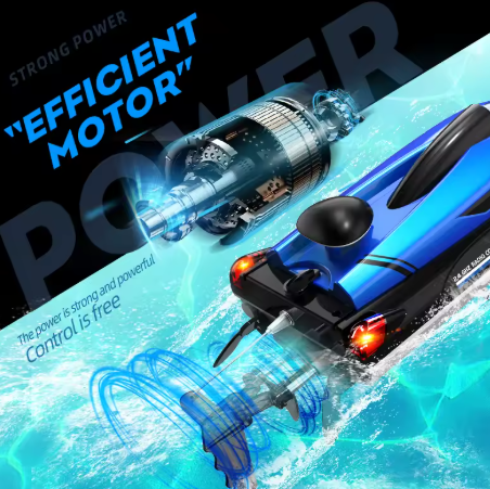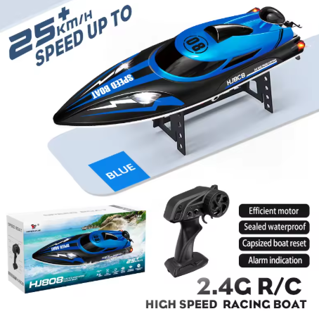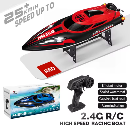 The HJ808 RC Boat features a 2.4GHz remote system and races up to 25km/h—perfect for high-speed fun on lakes or pools.