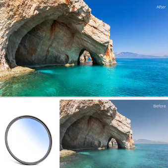 Multi-coated glass blocks UV rays and haze for clearer shots, while protecting