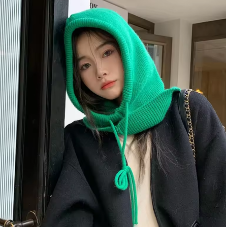 Knit Hooded Balaclava Hat – Women’s Winter Warm Drawstring Neck Warmer Beanie ❄️🧶🧣
