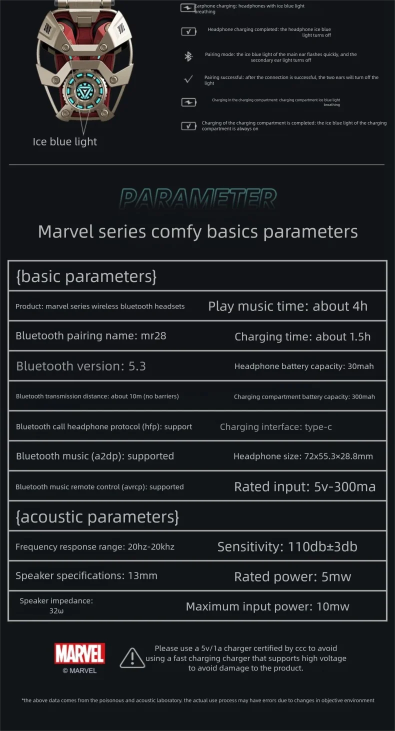 Designed with Iron Man’s iconic armor aesthetics and glowing RGB light accents, these earbuds redefine what it means to listen like a superhero.