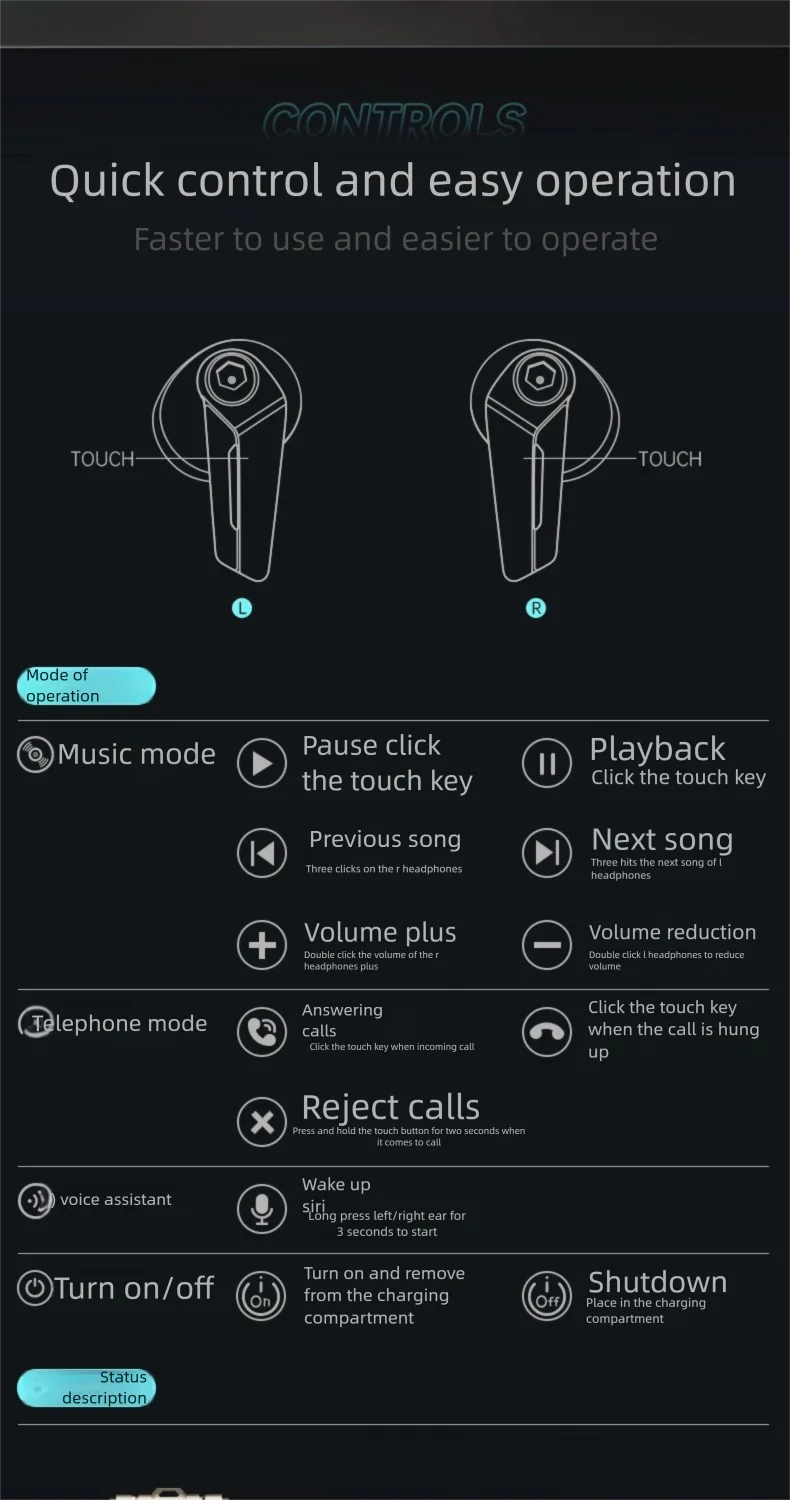 Functions: ANC, voice assistant, touch control, automatic pairing