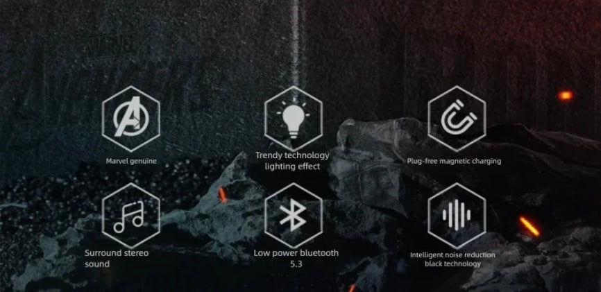 Unleash your inner hero with the MARVEL × Iron Man MR28 Wireless Earbuds — where cutting-edge technology meets the power of Stark Industries.