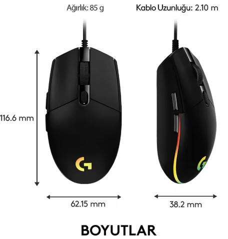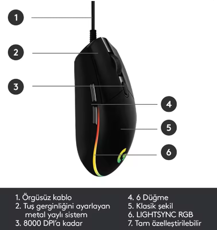 Logitech G102 Wired Gaming Mouse - 8000DPI, RGB Lighting, for PC/Mac