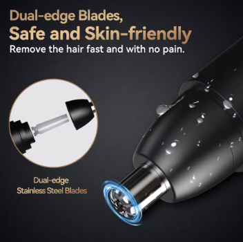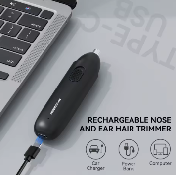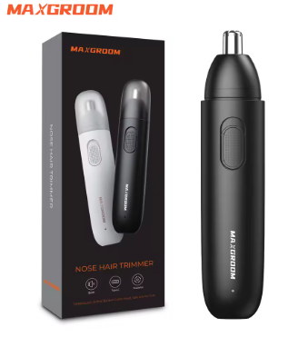 The MAXGROOM Nose Hair Trimmer features rechargeable dual blades for safe, efficient trimming of nose and eyebrow hair.