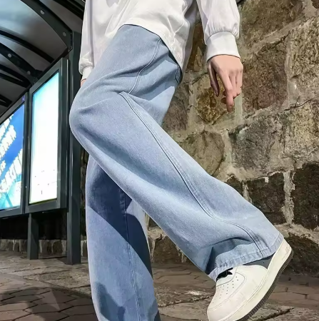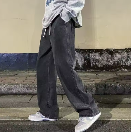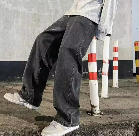 Men's Loose-Fit Wide Jeans - Black and Light Blue, 2024 New Street Fashion Denim Pants