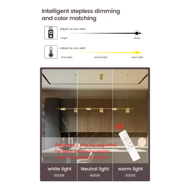 Bring a touch of modern elegance to your home with this sleek LED chandelier. Perfect for living rooms, dining areas, or kitchens, this pendant light combines minimalist design with versatile functionality.