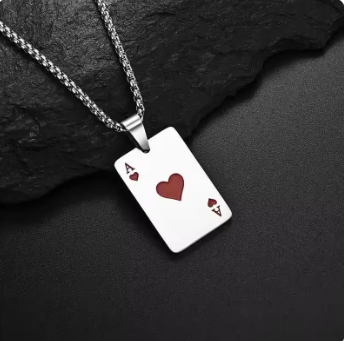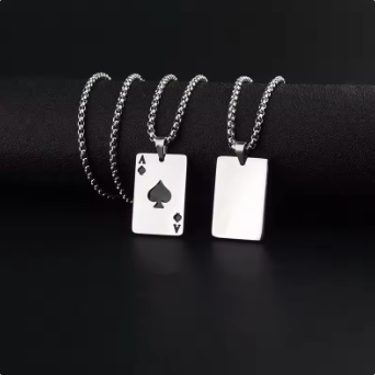 Unleash your bold style with this hip-hop inspired poker card necklace set. Featuring a sleek Ace of Spades and elegant Queen pendant, this jewelry duo brings the energy of the game and the streets straight to your outfit.