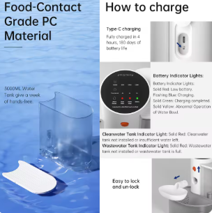 Large Capacity 🐱 – 3000ml tank supports 3–9 days of clean water depending on your pet’s drinking habits.