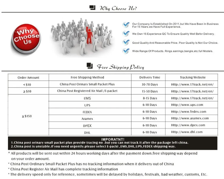 We ship worldwide via EMS, DHL, UPS, TNT, and Airmail.