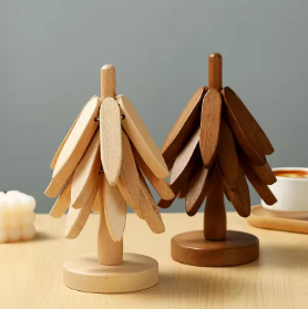 Crafted from high-quality walnut, this heat-resistant pad set features a beautiful natural grain and tree-shaped design that blends practicality with decorative charm. It effectively insulates against heat to protect table surfaces from burns, while adding a cozy, organic accent to your dining space.